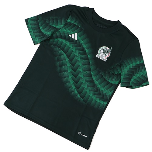 - メキシコ代表の2022年ジュニアモデルのプレマッチシャツ。滑らかなファブリックにAEROREADYの吸湿機能を採用。