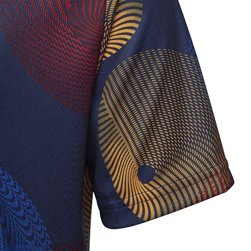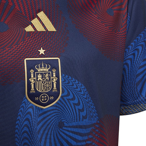 - スペイン代表の2022年ジュニアモデルプレマッチシャツ。スペイン代表選手たちは、この目を引くサッカージャージーに身を包み、試合前の最終調整を行う。スプリントやストレッチの際に快適な着心地を届ける、スリムフィットのカッティングとソフトな生地を採用。吸湿性に優れたAEROREADYテクノロジーが、衣服内を爽やかに保ちキックオフに向けて気持ちを整えるのをサポート。