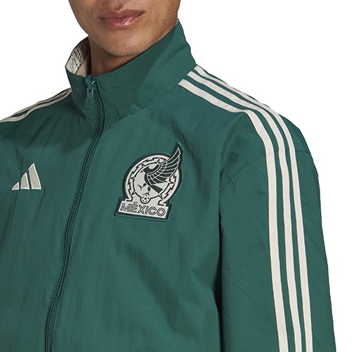 - メキシコ代表の2022年モデルのアンセムジャケット。リサイクル素材を使用した、メキシコ代表リバーシブルジャケット。