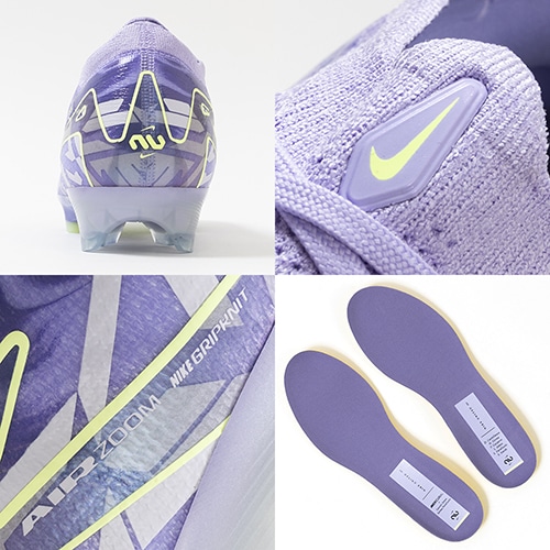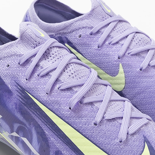 ●全面にFlyknitアッパーを使用してスピードを追求。 驚きの軽さで丈夫なAtomknitをサイドに使用した、軽量でサポート性に優れたデザイン。 Gripknit、Atomknit、Flyknitを組み合わせて、マーキュリアル史上最も薄いアッパーを実現。ボールとの距離を縮めるとともに、すぐに足に馴染みます。