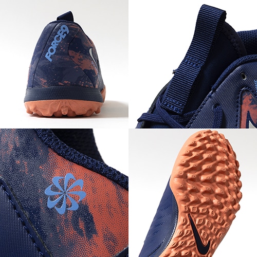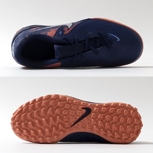 ●ジェネレーティブテクスチャーを配した人工芝で多方向のトラクションを発揮するラバーアウトソール。横方向の機敏性と可動域を強化し、スムーズな足運びを実現。