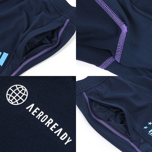 アルゼンチン代表の2022年モデルトレーニングパンツ。吸湿性に優れたAEROREADYとメッシュガセットにより、ピッチでどんなに激しいワークアウトをしても快適なはき心地が続く。