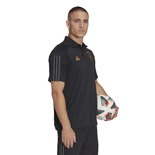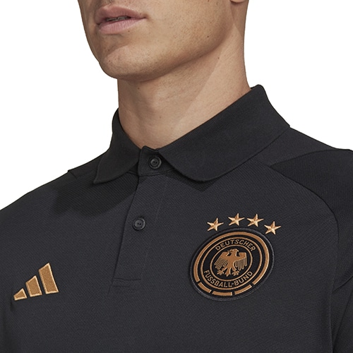 - ドイツ代表の2022年モデルのコットンポロシャツ。リサイクル素材を一部用いた、ドイツ代表サポーター向けポロシャツ。