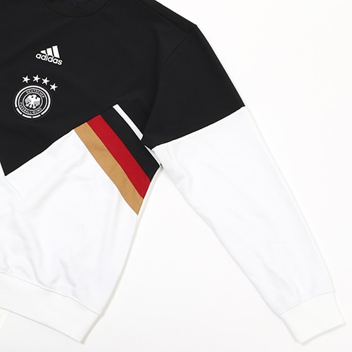 - ドイツ代表の2022年モデルのICONクルースウェット。リサイクル素材を一部用いた、レトロなドイツ スウェットシャツ。ソフトなフレンチテリー素材と90年代スタイルのゆったりとした着心地を採用。