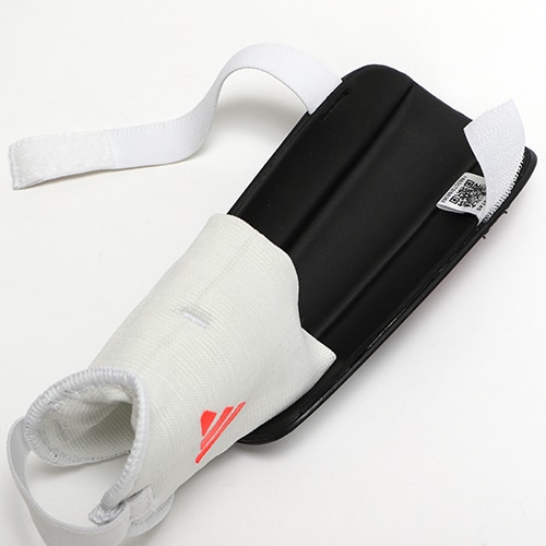 EVAクッションの裏張りを施した、人間工学に基づいた非対称デザインのハードシールド。快適な装着感を維持しながら、衝撃を吸収する。アンクルガードが足首を保護するため、自信を持ってプレーに臨める。ストラップで脚にしっかり固定できる設計になっている。