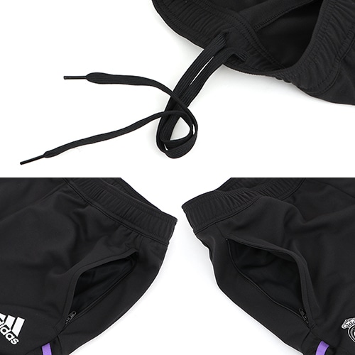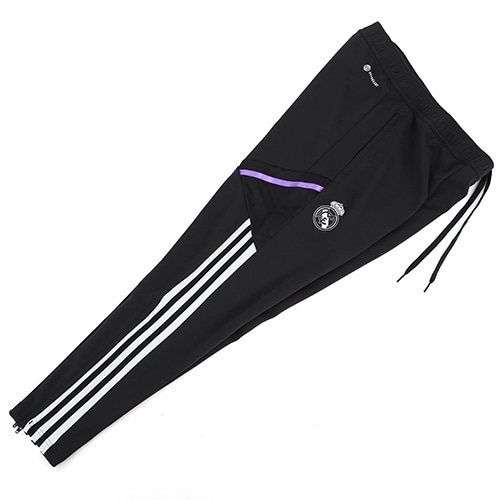 - ラ・リーガ(スペイン)、レアル・マドリードの2022-2023シーズンモデル。吸湿性に優れたAEROREADYファブリックを使用したトレーニングパンツ。アンクルジップを装備し、靴を履いたまま簡単に着脱できるのも優れたポイント。