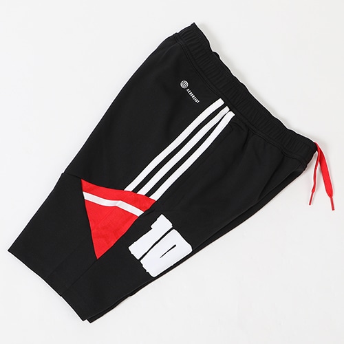 一流プレーヤーにもビギナーの時代があった。腰にあしらった「10」の数字は、彼のキャリアとともにあった背番号。世界屈指のフットワークをもつ選手を目標にトレーニングする間も、AEROREADYファブリックが汗を素早く吸い取り、快適な着心地をキープする。前にジップポケット付き。