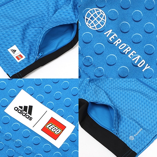 全体にLEGOブロックのモチーフとLEGOのミニフィギュアヘッドのバッジをあしらっている。ソフトなライニングと吸湿性に優れたAEROREADYファブリックを使用し、どんな冒険が待っていても快適な着心地が続く。レギュラーフィット。両サイドにシームポケット付き。