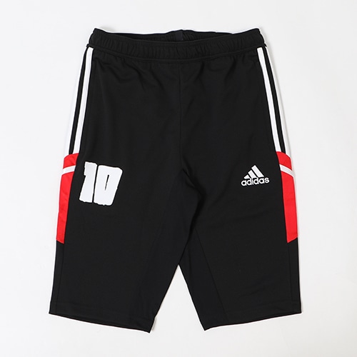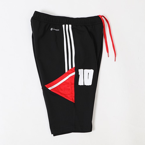 一流プレーヤーにもビギナーの時代があった。腰にあしらった「10」の数字は、彼のキャリアとともにあった背番号。世界屈指のフットワークをもつ選手を目標にトレーニングする間も、AEROREADYファブリックが汗を素早く吸い取り、快適な着心地をキープする。サイドシームにジップポケット付き。