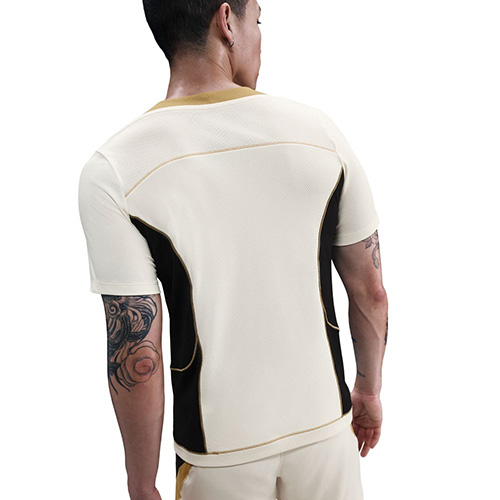 速乾性に優れた軽量メッシュと通気孔付きサイドパネルの組み合わせで、フィールドで涼しく落ち着いた気持ちで過ごせます。Dri-FITテクノロジーが、肌から汗を逃がしてすばやく蒸発させ、さらりと快適な状態をキープ。軽量ニット素材は、表面はメッシュで裏面はなめらかな肌触り。通気孔を配したメッシュのサイドパネルで通気性を強化。