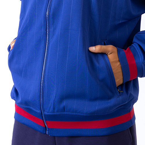 クラシックでレトロなデザインと現代的なディテールが融合し、ガーネットのアクセントを効かせた深いブルーのカラーはクラブのアイデンティティを象徴し、細い縦縞がエレガントで個性的なタッチを添えています。