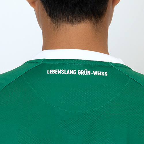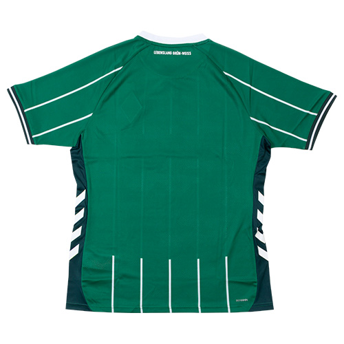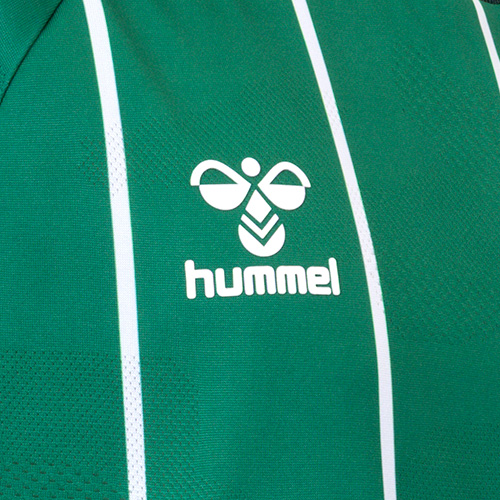 100%リサイクルポリエステルを使用し、Beecoolテクノロジーにより通気性と快適性を実現。ネックプリント「LEBENS LANG GRUN - WEISS」、胸にはhummelロゴとクラブバッジ、サイドパネルにはhummelのシグネチャーシェブロンがクラブのアイデンティティを際立たせています。
