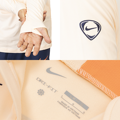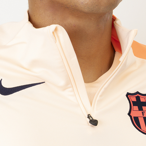 通気性、湿気コントロール、そして軽やかな保温性を備えたテクニカルファブリックを使用し、トレーニング中も快適な着心地をキープします。コーラルカラーのディテールと胸元のバルサのエンブレムをあしらったエレガントなベージュカラーが、バルサのアイデンティティとプライドを表現します。