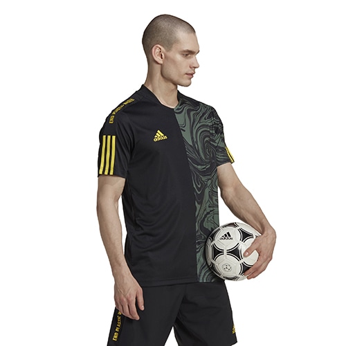 - サッカーのヘリテージデザインにルーツを持つ「TIRO(ティロ)」シリーズの2022年秋冬コレクション。パーレイ・オーシャン・プラスチックを一部使用した半袖ジャージー。