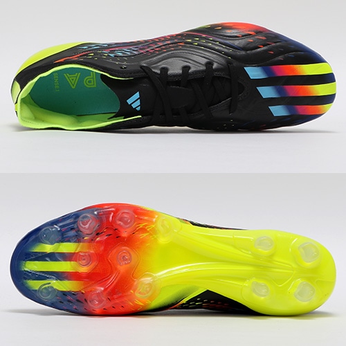 ●インサイド、アウトサイドに配置されたTOUCHPODS(タッチポッド)がボールの勢いを吸収し、足に吸い付くような安定感と、研ぎ澄まされた感覚でボールを扱うことを実現。
