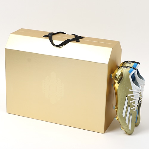 サッカーの大舞台で、金色のスパイクを履くことはプレーヤーの誇り。彼が初めて出場した2006年の大会で着用したスパイクからインスピレーションを得た、金色に輝くレジェンドのための限定スパイク。ヒールやインソールには母国をイメージしたNo.10ロゴ、左足に「+F50」・右足に「+F30」ロゴがデザインされ、特別パッケージに入ったスペシャル仕様。