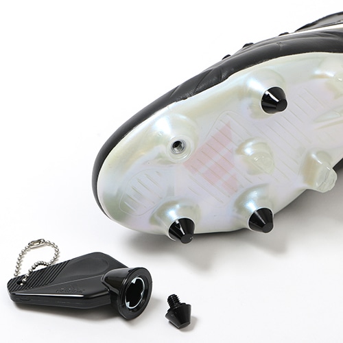 ●6本取替えスタッド+5本固定スタッドのミックスソールを採用し、好みや状況に合わせて交換できるアルミ(8mm×8、11mm×4)とTPU(6mm×8、9mm×4本)の替えスタッドと専用レンチ付き。