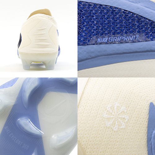 ●「Nike Cyclone(ナイキ サイクロン)360プレート」でディフェンダーをすばやく突破。一体型の円錐形スタッズを追加して配置し、かかと上部から前足部にかけて体重を効果的に分散。これによりバランスが良くなり、足裏に均等に圧力がかかるため、スピーディーなプレーを可能にしながら、より快適な履き心地が実現。