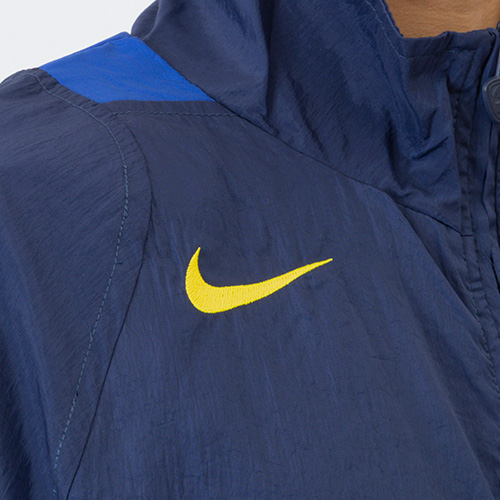 非対称の曲線的なラインに、撥水加工を施したシェルとメッシュの裏地を組み合わせ、観客席でもストリートでも試合にぴったりのスタイルを演出します。シワ感のある軽量のウーブンシェルに撥水加工を施し、雨天でもさらりとした状態をキープ。 メッシュの裏地で通気性を強化しました。