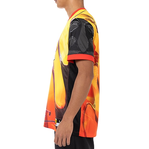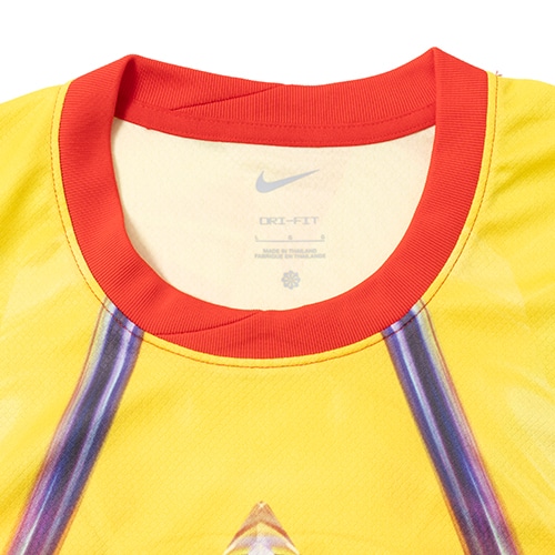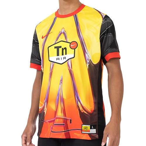 象徴的なナイキのスニーカー「ナイキ エア マックス プラス」の、1998年のオリジナルモデルからインスピレーションを得た、炎のようなケージと明るい夕日の色が、特徴的なデザイン。胸の「Tn (Tuned Airクッショニング)」ロゴが、このキットに次のレベルの熱さをもたらします。プロのユニフォームをモデルにしたデザインのディテールと、汗を逃がすNike Dri-FIT テクノロジーを組み合わせて、お気に入りのスタイルを提供します。
