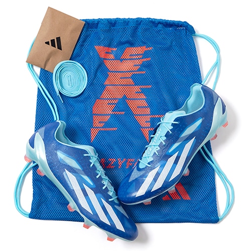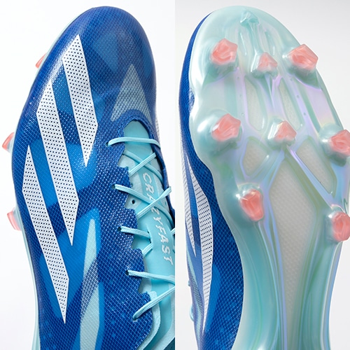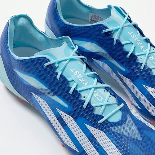 - 2023年10月23日(月)発売。冬の新色コレクション『MARINE RUSH(マリン ラッシュ) PACK』が登場。急激な方向転換や俊敏なステップワークに必要な“脅威のアジリティ”をもたらす、スピードに特化した「X CRAZYFAST(クレイジーファスト)」のFG(ファームグラウンド)対応プレミアムモデルスパイク。