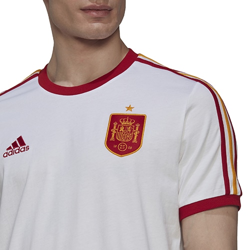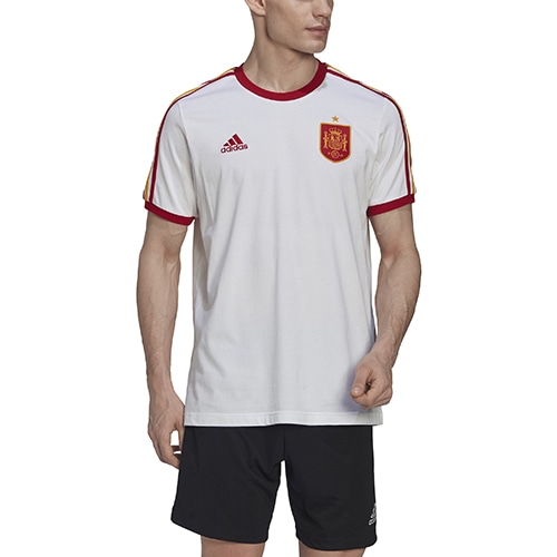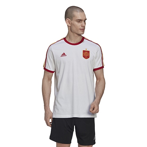 - スペイン代表の2022年モデルのDNAスリーストライプ Tシャツ。スペイン代表チームのサポーターに贈る、ソフトなジャージー製Tシャツ。