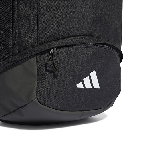中央上部に浮き上がる短いスリーストライプスとスクリーンプリントの3バーロゴがアクセントの、サッカーへの情熱も詰め込めるアディダス バックパック。移動を快適にするパッド入りショルダーストラップを装備。使用後のスパイクに風を通すことができる、専用コンパートメントも付いている。