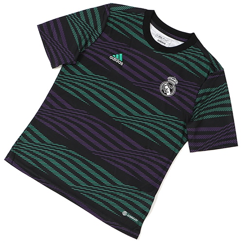 - ラ・リーガ(スペイン)、レアル・マドリードの2022-2023シーズンジュニアモデルプレマッチシャツ。公式戦試合前などに選手着用予定。*ジャパンサイズ表記