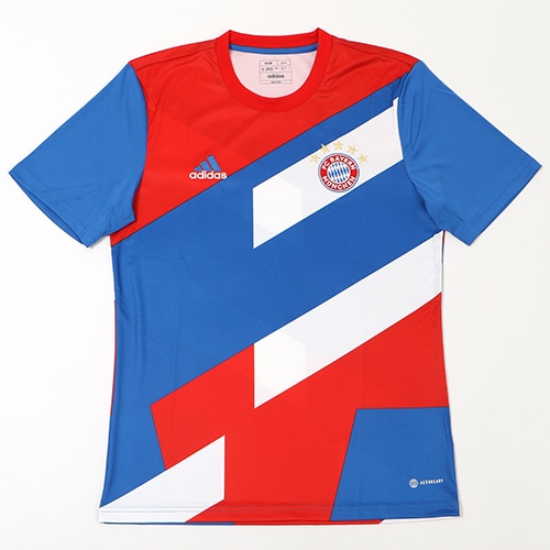 - ブンデスリーガ(ドイツ)、バイエルン・ミュンヘンの2022-2023シーズンモデルプレマッチシャツ。公式戦試合前などに選手着用予定。*ジャパンサイズ表記