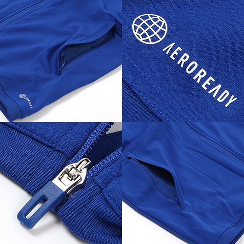 - サッカーのヘリテージデザインにルーツを持つ「TIRO(ティロ) 23」シリーズ。アディダス各国代表チームのトレーニングウェアに採用されている2023年モデル。リサイクル素材で作られた、伸縮性に優れたトレーニングジャケット。