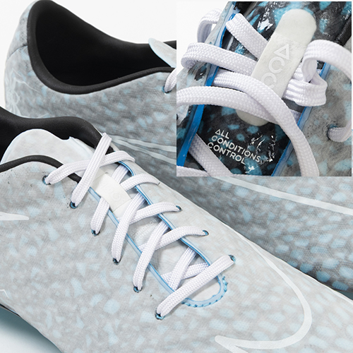 ●雨の日も晴れの日も安定したボールタッチを実現するAll Conditions Control (ACC) テクノロジーを採用。柔らかなNikeSkinアッパーで、濡れた状態でも乾いた状態でもドリブルやパスを行う際のコントロールが向上します。水に触れるとアッパーのパターンが変わるデザイン。