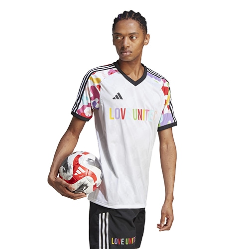 - サッカーのヘリテージデザインにルーツを持つ「TIRO(ティロ)」シリーズ。リサイクル素材で作られた、印象的な半袖ジャージー。毎日努力を怠らず、自分らしく過ごすことが、サッカー選手の誇り「PRIDE(プライド) 」コレクション。
