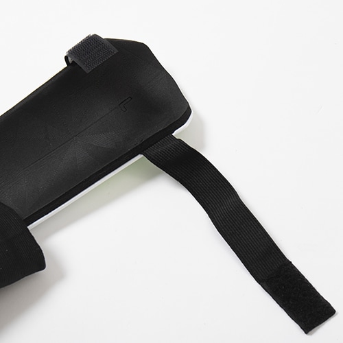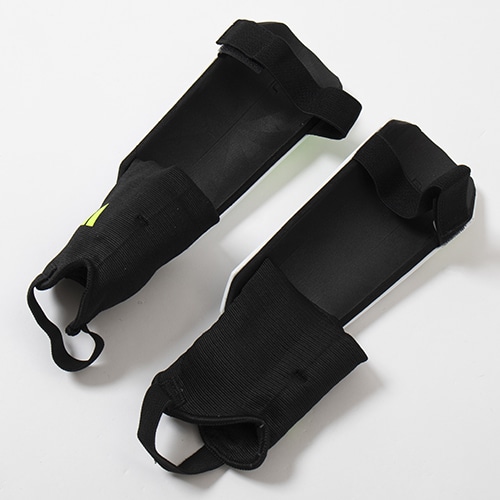 EVAクッションの裏張りを施した、人間工学に基づいた非対称デザインのハードシールド。快適な装着感を維持しながら、衝撃を吸収する。アンクルガードが足首を保護するため、自信を持ってプレーに臨める。ストラップで脚にしっかり固定できる設計になっている。