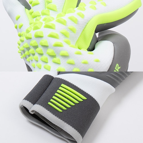 - 2023年秋の新色コレクション『CRAZYRUSH(クレイジーラッシュ) PACK』が登場。adidas「PREDATOR(プレデター)」シリーズのフットウェアとデザイン連動した、ネガティブカットGK(ゴールキーパー)グローブ。