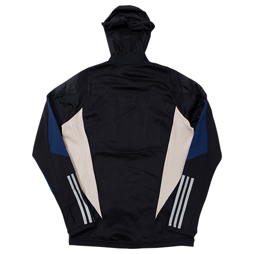 - サッカーのヘリテージデザインにルーツを持つ「TIRO(ティロ) 23」シリーズ。アディダス各国代表チームのトレーニングウェアに採用されている2023年モデル。リサイクル素材で作られた、収納可能なバラクラバ付きトップ。