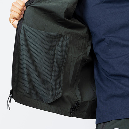 伸縮性と通気性に優れた素材を使用し、動きやすく、調節可能な機能を備えています。バンジーコードとコードロックで、裾とフードのフィット感をカスタマイズ。動きやすさを追求した肘の立体的なカットが、ナイキテックならではの美学を演出。