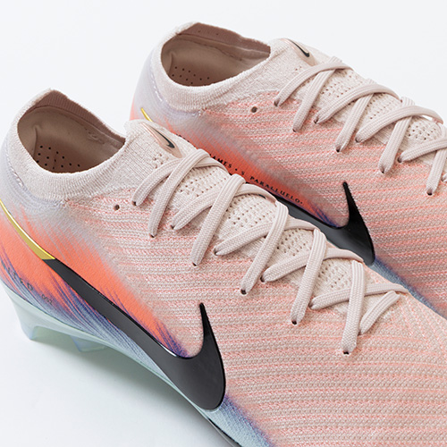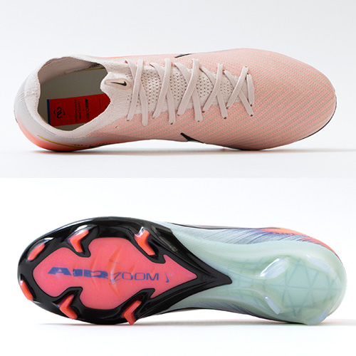 ●全面にFlyknitアッパーを使用してスピードを追求。 驚きの軽さで丈夫なAtomknitをサイドに使用した、軽量でサポート性に優れたデザイン。 Gripknit、Atomknit、Flyknitを組み合わせて、マーキュリアル史上最も薄いアッパーを実現。ボールとの距離を縮めるとともに、すぐに足に馴染みます。