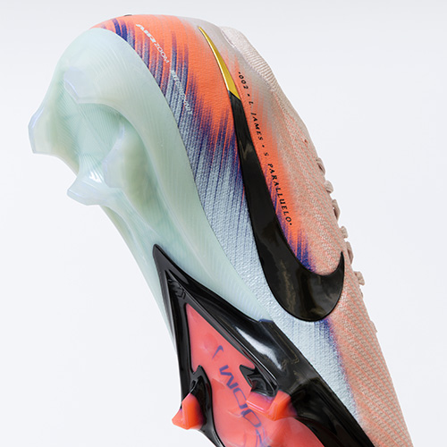 ●マイクロモールディング加工のテクスチャーと粘着性のあるNike Gripknit素材により、スパイクが足にフィットし、ボールタッチの精度がアップ。ハイスピードでドリブルするときやシュートを決めるときのボールコントロールエリアが広がりました。 足の形にぴったりとフィットし、フィールドが濡れていても乾いていても同様にグリップ性を発揮します。
