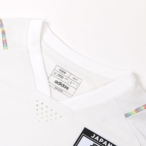 - サッカー日本代表・サムライブルーの2022年モデル、ゲームデープレマッチジャージー。リサイクル素材で作られた、サッカー日本代表ウォームアップジャージー。無駄を省いたスリムなシルエットのシャツには、厳しい暑さのなかでもゲームを有利に運ぶために準備をする選手に清涼感をもたらす、HEAT. RDYテクノロジーを採用。