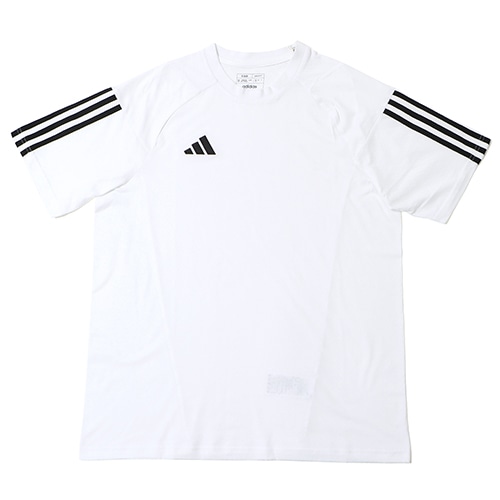 - サッカーのヘリテージデザインにルーツを持つ「TIRO(ティロ) 23」シリーズ。アディダス各国代表チームのトレーニングウェアに採用されている2023年モデル。リサイクル素材で作られた、ミニマルなプレゼンテーションTシャツ。