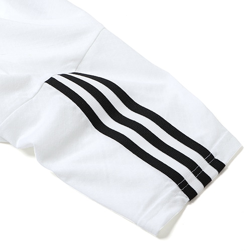 ピッチの外では、それらしいスタイルで。スタンドでの試合観戦やチームと一緒に移動する際に着たいサッカーTシャツ。コットン混紡生地を使用したソフトで快適な一枚。素早い滑らかな動作が可能になる。胸にあしらったスリーバーロゴの刺しゅうは、アディダスのヘリテージにスポーツのパフォーマンスをプラスしたアクセント。レギュラーフィット。