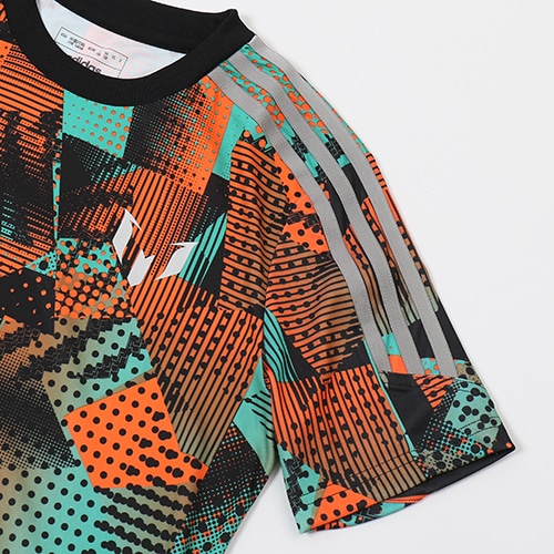 - アルゼンチンが誇る英雄リオネル・メッシ(MESSI)のロゴをあしらったアパレルコレクションが登場。『L10NEL M35SI PACK』のフットウェアとデザイン連動した、吸湿性に富む鮮やかなジュニア向け半袖ジャージー。