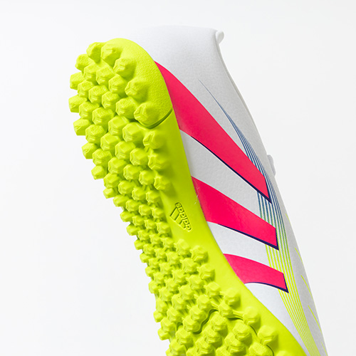 ●人工芝で正確なプレーを生み出すラグラバーアウトソールを搭載。