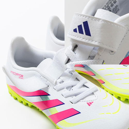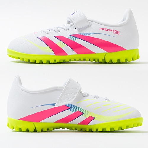 - 2025年4月3日(木)発売。春夏の新色コレクション『CELESTIAL VICTORY(セレスティアル ビクトリー) PACK』が登場。adidas『PREDATOR(プレデター)』がアップデート。すべては、試合を決めるゴールのために。現代のゴールスコアラーのために生まれ変わった『PREDATOR(プレデター)』のTF(ターフコート)対応ジュニア用トレーニングシューズのワンベルトタイプ。