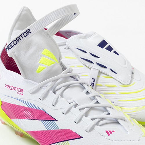 - 2025年4月3日(木)発売。春夏の新色コレクション『CELESTIAL VICTORY(セレスティアル ビクトリー) PACK』が登場。adidas『PREDATOR(プレデター)』がアップデート。すべては、試合を決めるゴールのために。現代のゴールスコアラーのために生まれ変わった『PREDATOR(プレデター)』のFT(フォールディングタン)タイプのELITE(エリート)モデルFG(ファームグラウンド)対応スパイク。