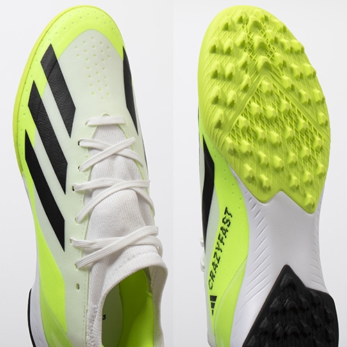 - 2023年7月11日(火)発売。2023年秋のコレクション『CRAZYRUSH(クレイジーラッシュ) PACK』から、スピードに特化したadidas『X(エックス)』シリーズに急激な方向転換や俊敏なステップワークに必要な“脅威のアジリティ”をもたらすNEWモデル「X CRAZYFAST(クレイジーファスト)」が登場。TF(ターフコート)対応トレーニングシューズ。