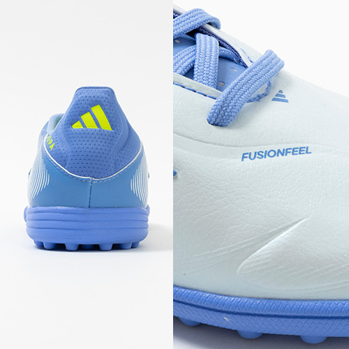 ●レザーのような風合いの合成素材Fusionfeelをアッパーにあしらい、前足部に正確なボールタッチを叶える3Dプリントを施している。
