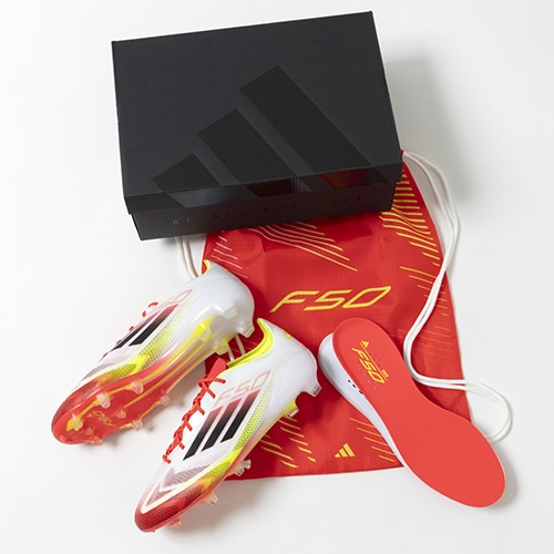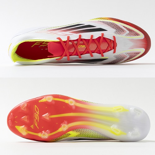軽量素材とテクノロジーを駆使し、現代のゲームスピードに適応するように再設計されたadidas『F50』のELITE(エリート)モデルFG(ファームグラウンド)対応スパイク。