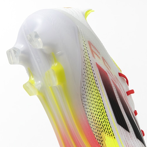 ●爆発的な推進力と効率的に素早くパワー伝達するために設計された「スプリントフレーム360」アウトソール。追加の前足スタッドとジェネレーティブスタッドデザインは、乾いた天然芝でのトラクションを最適化。さらに一体型のエクスターナルヒールカウンターを採用し、あらゆる方向への加速とスピードに貢献。