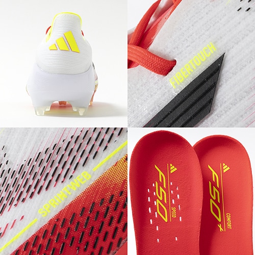 ●究極の快適さとボールの最適な感触を実現するために設計された軽量「ファイバータッチ」アッパー。設計された「スプリントウェブ」は、適応性がありながらもサポート力のあるフィット感をもたらし、高速でのボールコントロールに最適な感触を提供します。